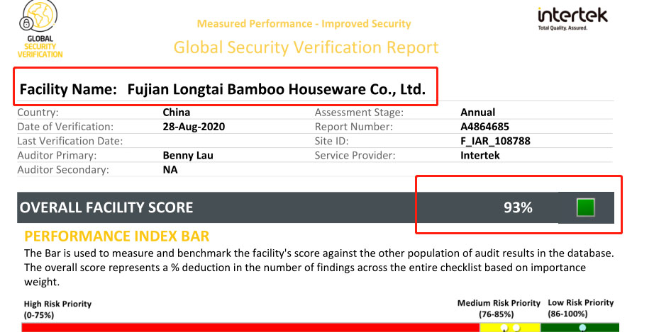 福建龍泰竹2018年在深圳市創思維企業管理技術服務有限公司輔導下通過社會責任BSCI驗廠取得B級報告;2020年再與創思維合作通過反恐GSV認證并取得93高分。未來再一起征途,共創新輝煌!