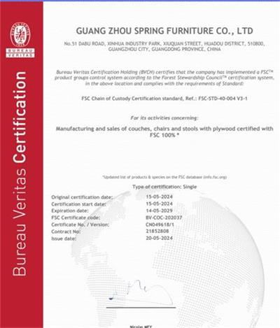 在創思維驗廠網老師專業技術、全程跟進耐心細致輔導以及公司全體員工配合下,一次性順利通過BV-FSC森林認證,為將來公司發展奠定了良好的發展基礎,既開拓了市場同時也增加了消費者對公司的信賴,在這里再次祝賀廣州斯普睿家具有限公司2024年一次性成功通過BV-FSC森林認證,同時也期待未來再次與創思維驗廠網合作!