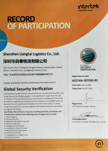 深圳市良泰物流有限公司順利通過GSV年度審核并取得證書