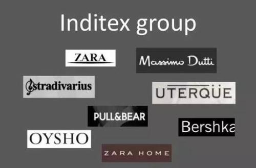 Inditex旗下?lián)碛衂ARA、Pull and Bear、Massimo Dutti、Bershka、Stradivarius、Oysho、Zara Home、Uterque、Zara Kids服裝品牌,ZARA是其中最成功的,被認(rèn)為是歐洲最具研究?jī)r(jià)值的品牌之一。